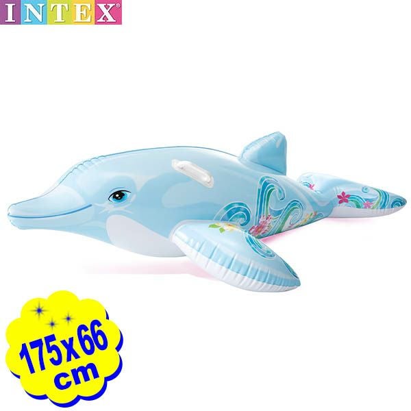 思わず目を引くポップな浮輪やフロート、プールでフォトジェニックな夏を楽しんじゃおう。綺麗なイルカのフロートです。