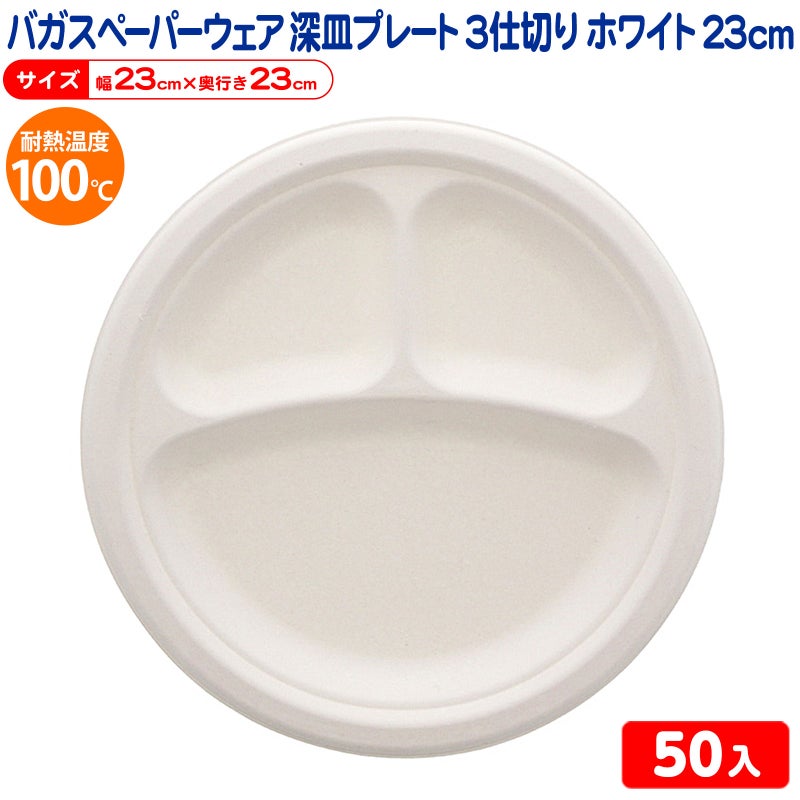 丸皿タイプ、3仕切り付き。水や油に強く、イベントでの使用や、アウトドア・ホームパーティなどで活躍します。