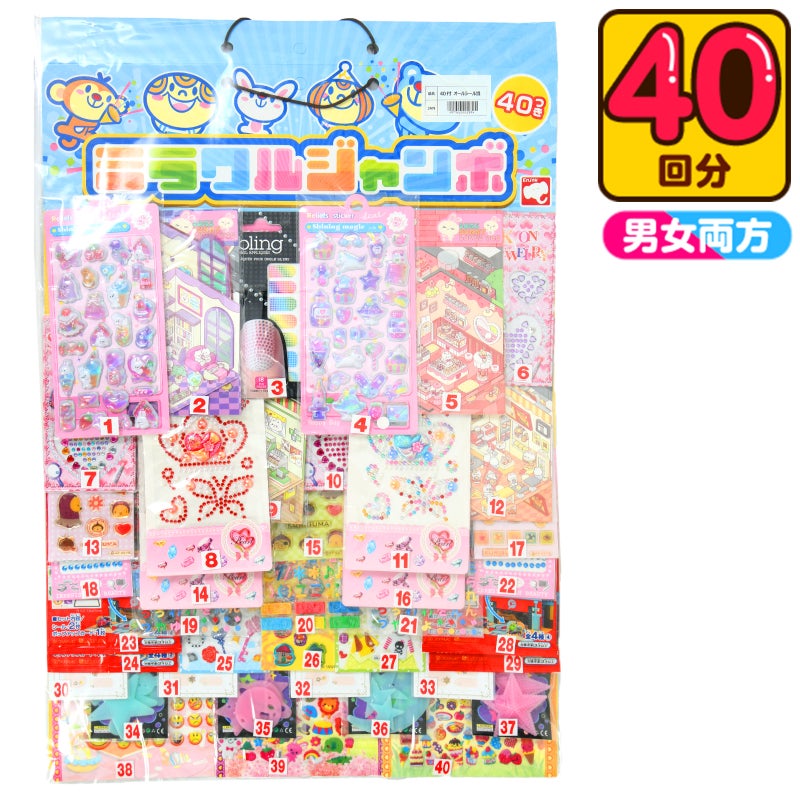 大当たり景品と小当たり景品が合計40個付いています。