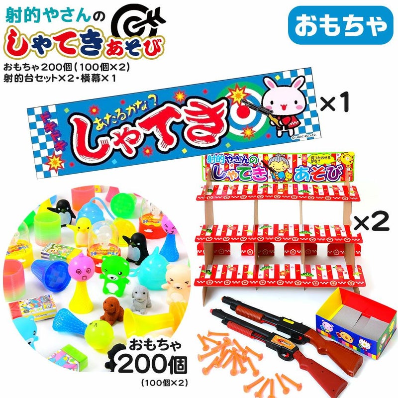 用途に合わせて選べる「射的やさんのしゃてきあそび」セット!おもちゃ200個(100個×2)・射的台セット×2・横幕×1のセットです。