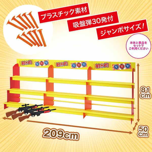 他の画像を見る 送料無料!!当てくじ プラダン ジャンボ 射的 大会 スターターキット 射的 吸盤ライフル { 当てくじ 射的 しゃてき パーティーグッズ 余興 ゲーム 射的セット 銃 吸盤 屋台 射的ゲーム }{ お祭り 縁日 子供会 イベント 景品 夏祭り }[25I04][dmo]{即日出荷 配送区分A} 送料無料(※沖縄県は送料要) メーカー希望小売価格 ¥ 27,500 のところ 当店特別価格 ¥ 25,815 税込 カートに入れる お気に入りに登録する