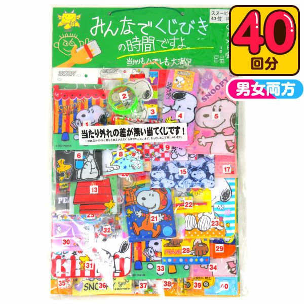 大当たり景品と小当たり景品が合計40個付いています。 全商品スヌーピーグッズがうれしい♪当たりハズレの景品の差が少ない当てくじです。