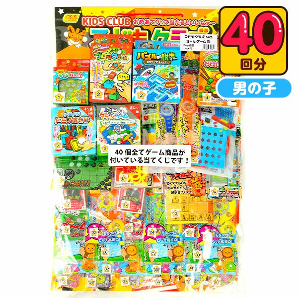 | 商品説明 | 景品はすべてゲーム商品がついていて、どれをもらっても盛り上がります。 バザーやお誕生日会にもおススメです。 |