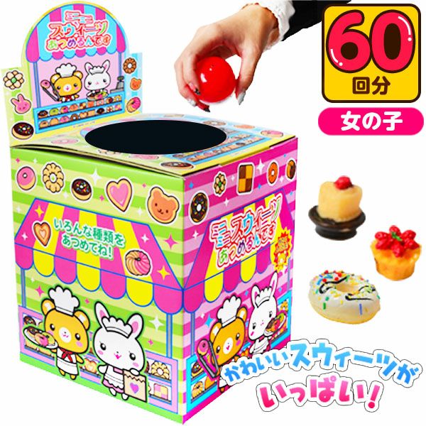 | 商品説明 | カプセルの中に色々な種類のスイーツモチーフのストラップや消しゴムなどが入っている、つかみどりタイプのくじです。何が入っているかわからないので、わくわくドキドキするシリーズ。バザーや誕生会などご自宅用でもおススメです。 |