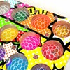 大当たり景品と小当たり景品が合計100個付いています。ギュッと握れば、ブドウのように飛び出る!ぶどうボール当てだよ☆他にも楽しいグッズが入ってどれがあたってもドキドキわくわく・・・!?感触が不思議でやみつきになるよ。