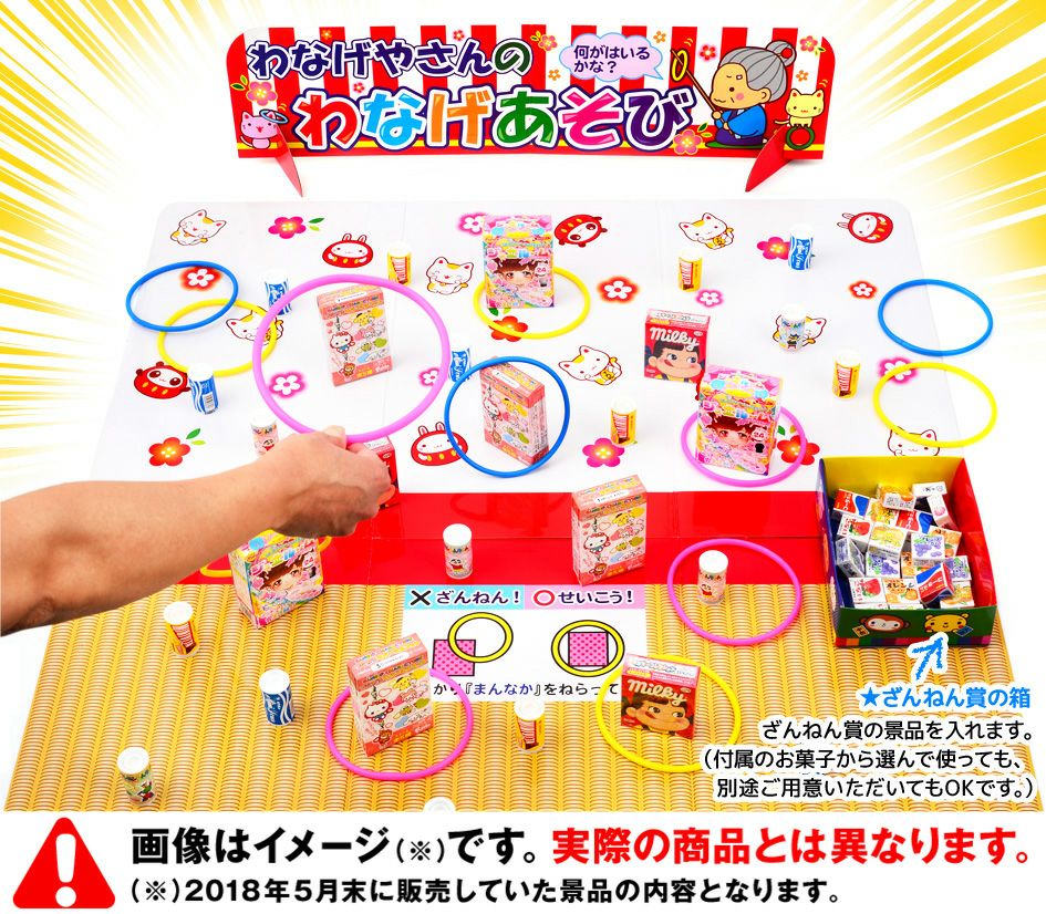 他の画像を見る 当てくじこれ1つで輪投げやさんになれる! おかし180個・輪投げセット×2・横幕×1 セット 輪投げやさんのわなげあそび { 当てくじ 幼稚園 夏祭り 景品 輪投げ わなげ 人気 男の子 女の子 子供 問屋 駄菓子 }{ 子供会 お祭り くじ引き 縁日 あてくじ 当て アテクジ クジ くじ くじびき お菓子 おかし }[24E08] メーカー希望小売価格 オープン価格 のところ 当店特別価格 ¥ 9,515 税込 在庫切れ 再入荷お知らせ お気に入りに登録する