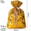キラッとした光沢のあるゴールドのアルミ蒸着のリボン付き巾着です。