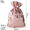 キラッとした光沢のあるピンクのアルミ蒸着のリボン付き巾着です。