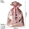 キラッとした光沢のあるピンクのアルミ蒸着のリボン付き巾着です。