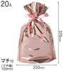 キラッとした光沢のあるピンクのアルミ蒸着のリボン付き巾着です。