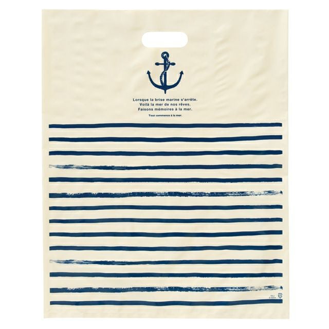 手描きのボーダーとマリンデザインがさわやかな印象のPEバッグです。