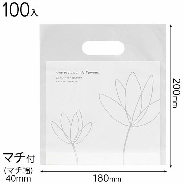半透明のベースに、うっすらと描かれた花が上品な持ち帰り袋です。