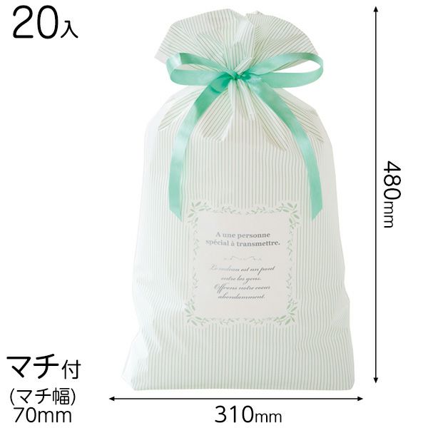 人気のミントストライプデザインのリボン付巾着バッグです。