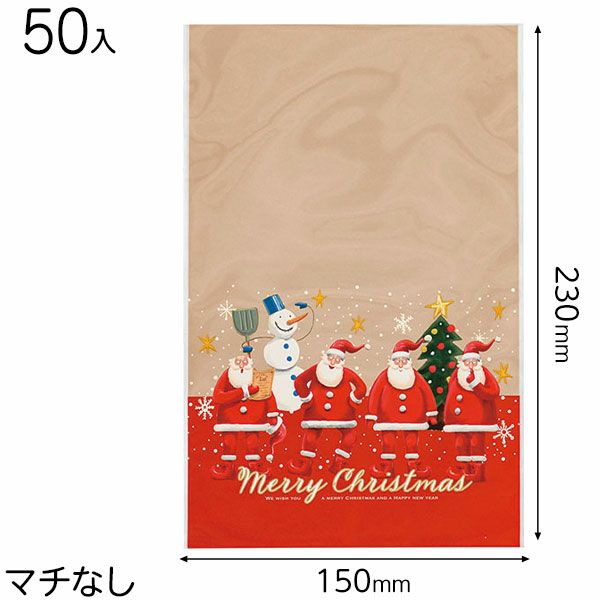 愉快なサンタクロースとスノーマンが描かれたクリスマスのOPPギフトバッグです。