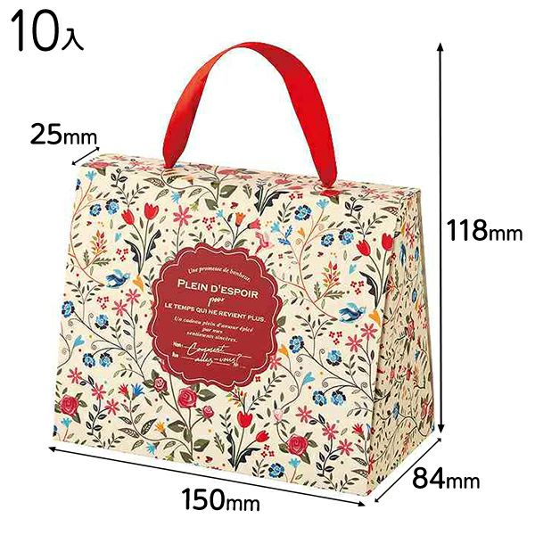 色とりどりの可愛い花柄と赤いリボンの持ち手が可愛いバッグ型のギフトボックスです。