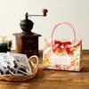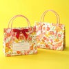 ピンクや赤、オレンジの花柄がかわいいペーパーバッグ(紙袋)です。