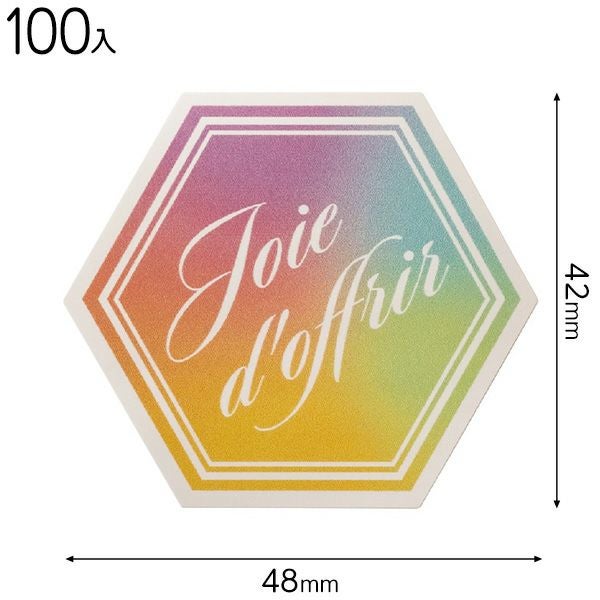 淡いグラデーションカラーがおしゃれなオーロラ色の六角形のシールです。