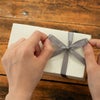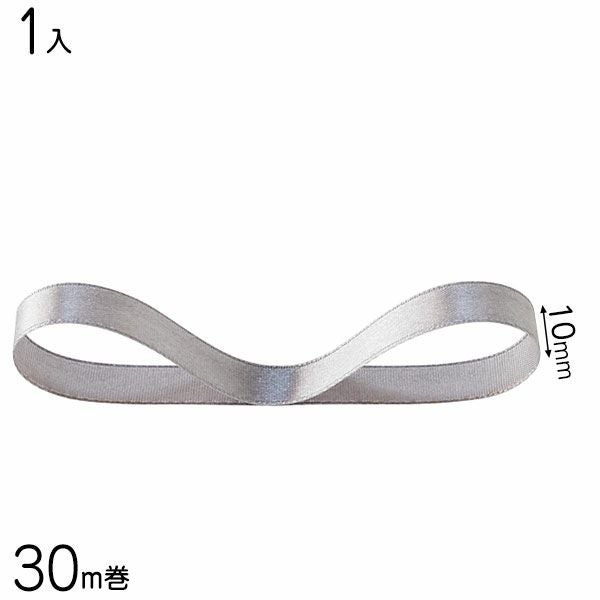 ツヤのあるウォームグレーの片面サテンリボン(10mm幅)です。