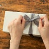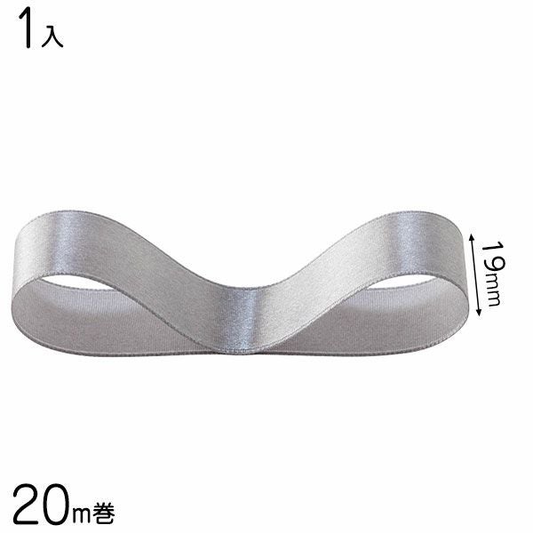 ツヤのあるウォームグレーの片面サテンリボン(19mm幅)です。