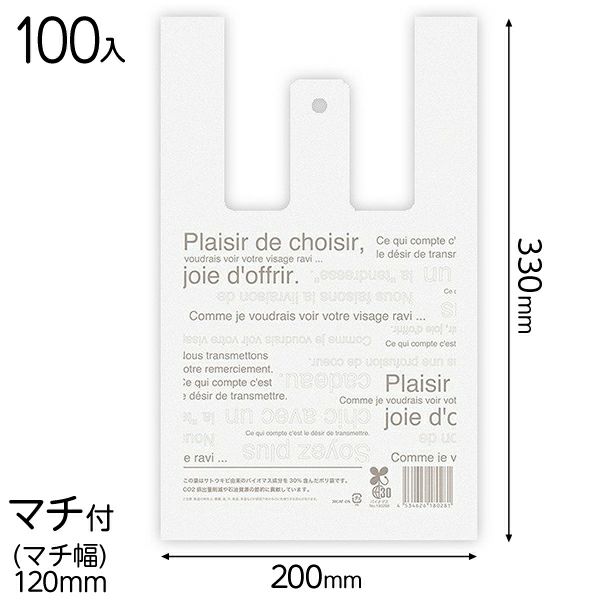 バイオマスマークやバイオマス原料配合の説明、有料販売に便利なJANコード印刷などの基準を満たしたレジ袋有料化対応商品です。