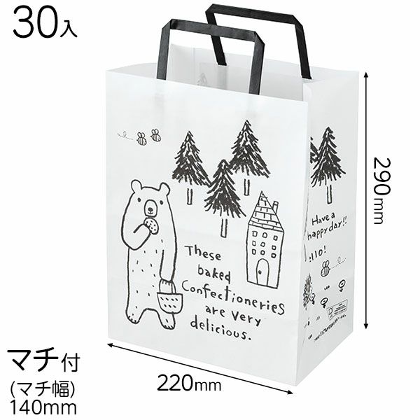 白黒のクマのイラストが可愛い「グラットンベア」シリーズのエコ紙袋です。