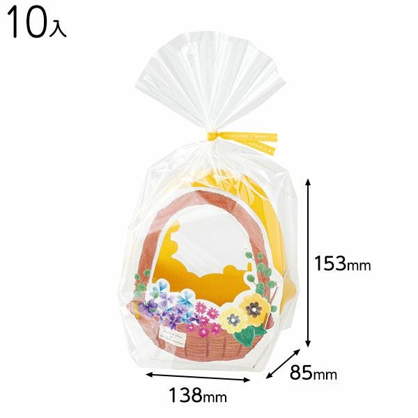 カゴから中のお菓子があふれるように見える、ちょっとお得で可愛らしいデザインです。