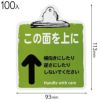 「この面を上に」の文字とイラストで注意を促すとともに、宅配ドライバーさんへの感謝の気持ちのメッセージを添えたステッカーです。