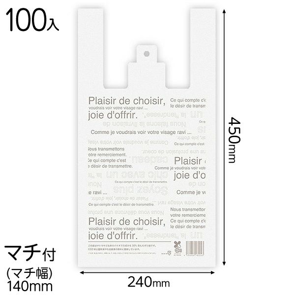バイオマスマークやバイオマス原料配合の説明、有料販売に便利なJANコード印刷などの基準を満たしたレジ袋有料化対応商品です。
