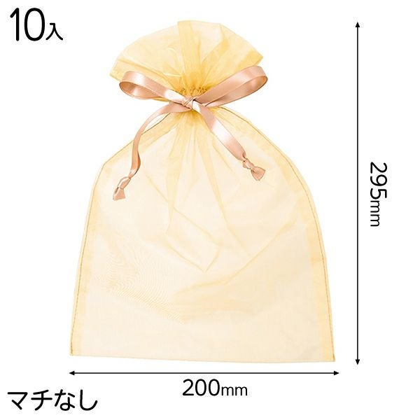 シャンパンゴールドが高級感を演出するオーガンジーのリボン付巾着バッグです。