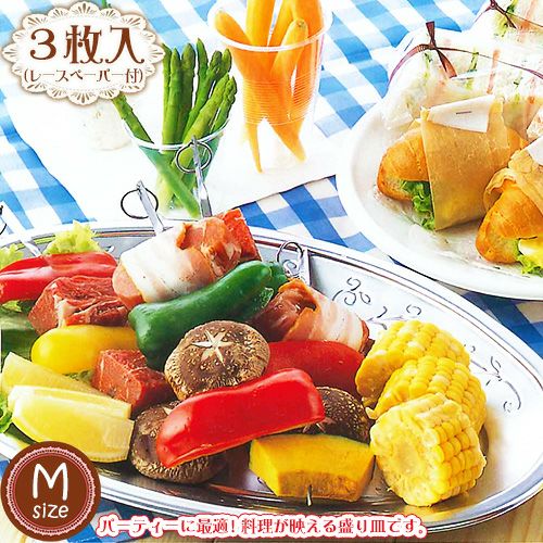 パーティーやレジャーに最適な、料理が映えるプレートです。レース付きで華やかさがあり、幅広でたくさん入ります。ペーパー有り無しで違った雰囲気を楽しむことも出来ますよ・レースペーパー付き
