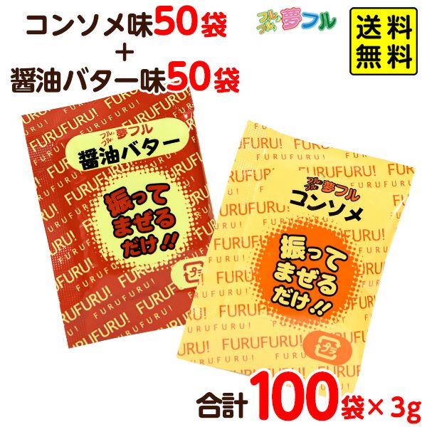 人気の醤油バター味とコンソメ味の小袋が合計100袋入っています。
