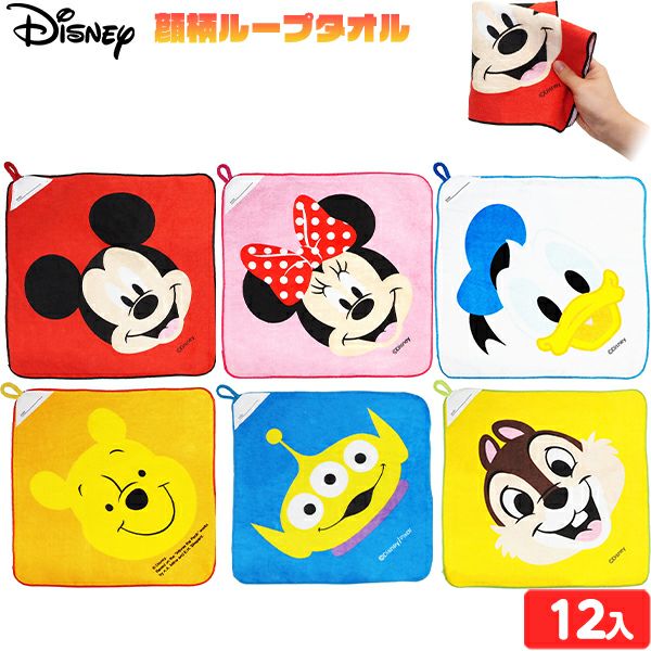 洗い替えに何枚あっても助かる、ディズニー柄のひも付タオルです。
