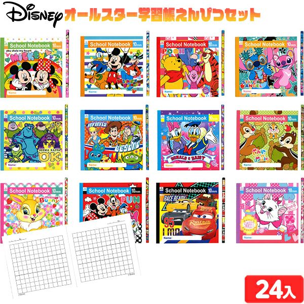 プチギフトや配布用の人気アイテム!人気のディズニーキャラクターのかわいい学習ノートと鉛筆1本がセットになっています。