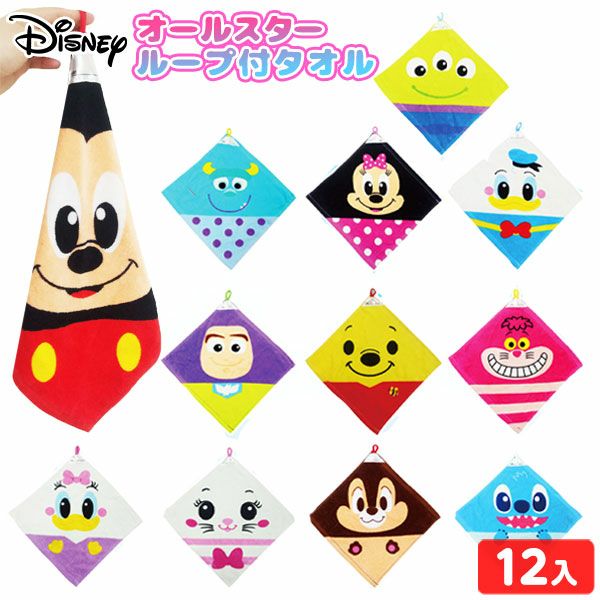 保育園・幼稚園などの入園準備に!ディズニーデザインのかわいいループ付タオルです。