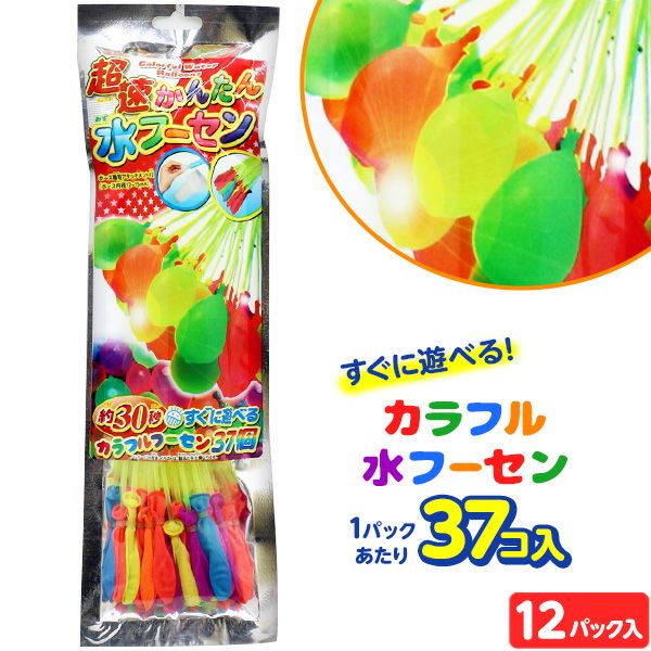 超速!簡単!37個の水フーセンが一度に作れちゃう!!すぐに遊べる!約30秒で、カラフル水風船が一気に作れます。