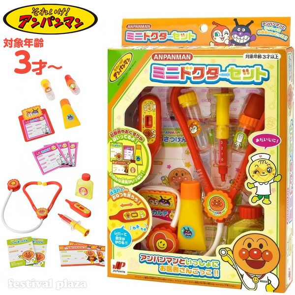 パッケージ入りなので、ギフトや誕生日プレゼントにも喜ばれ、オススメのシリーズです。アンパンマンといっしょにお医者さんごっこしよう!