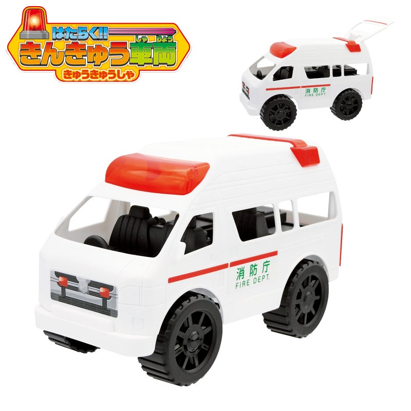 後方ドアがひらく!! フリーホイール走行!後方ドアも開閉する、かっこいい救急車のおもちゃです。