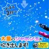 超大量噴射!!ボタン式でとってもかんたん!トレーに置いたシャボン液を発射口につけてスイッチを押すと、一気にしゃぼん玉ができちゃうよ♪