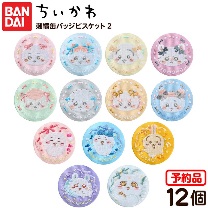 楽しめるビスケットシリーズのちいかわ第2弾!各キャラクターが可愛らしい刺繍缶バッジになりました。