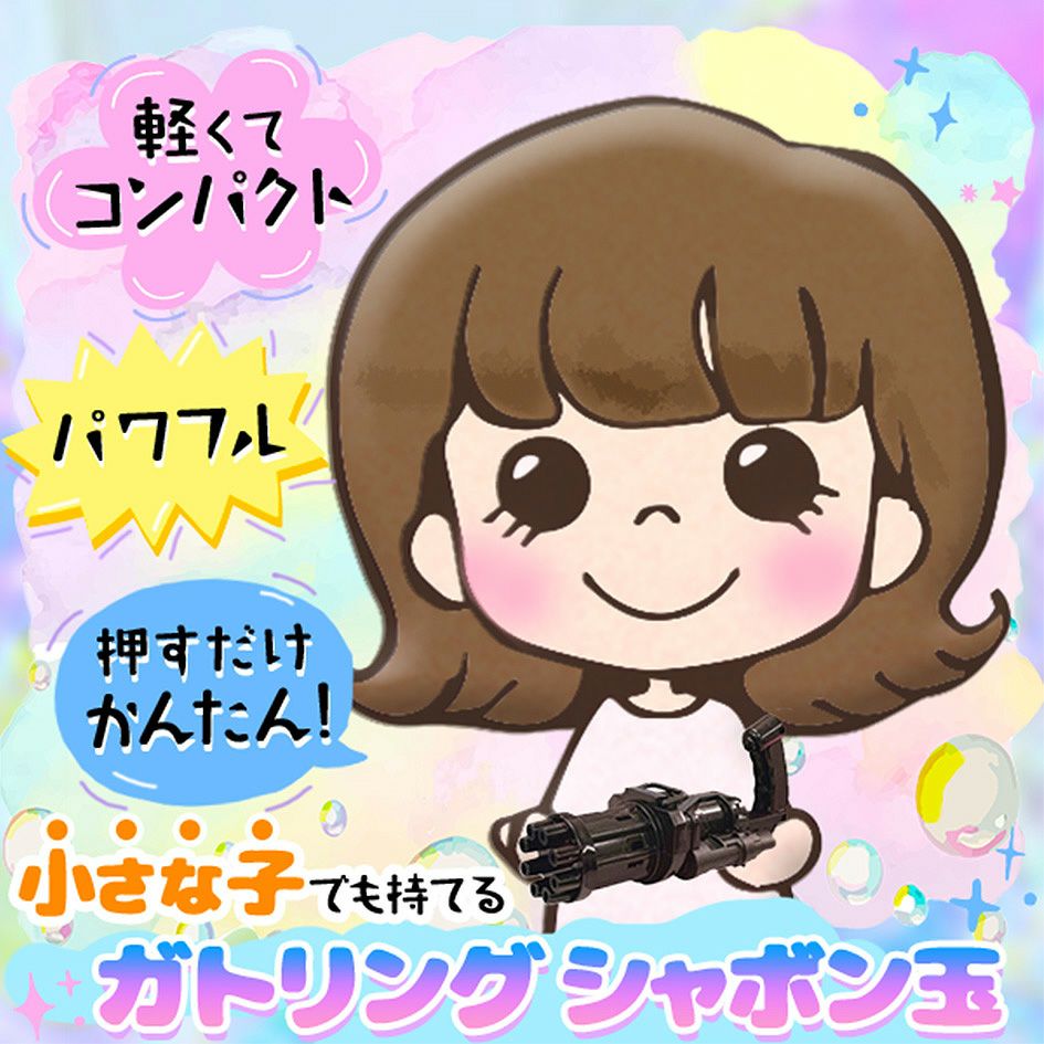 他の画像を見る ガトリングバブルマシン 泡祭り 電動シャボン玉 TikTok超人気 バブル クレイジーガトリング バブルガン { 景品玩具 シャボン玉 しゃぼん玉 しゃぼんだま ガン ガトリング いっぱい出る }{ おもちゃ オモチャ 玩具 景品 お祭り 縁日 パーティー イベント 外遊び }238[24I09]{即日出荷 配送区分D} メーカー希望小売価格 オープン価格 のところ 当店特別価格 ¥ 253 税込 カートに入れる お気に入りに登録する
