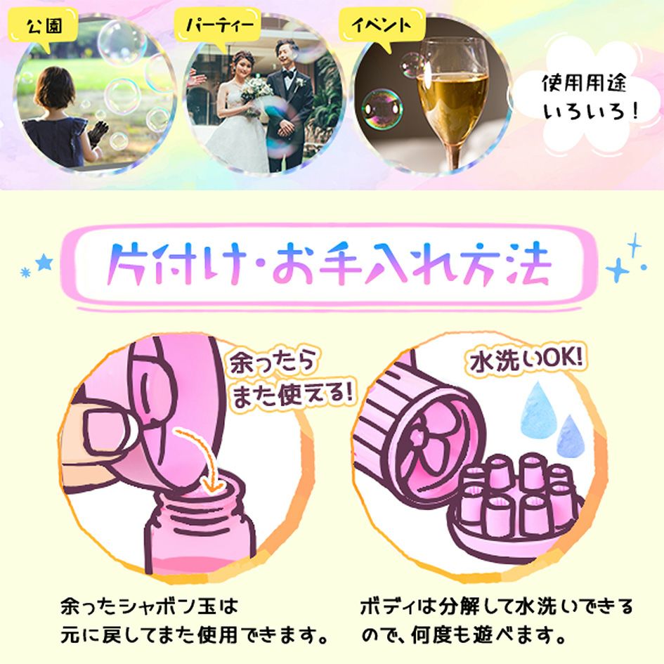 他の画像を見る 1個あたり54円(約59.4円税込)x24個入=1296円(1426円税込) スティックバブル 24個入 { 景品玩具 シャボン玉 }{ 子供会 景品 お祭り くじ引き 縁日 お子様ランチ おもちゃ しゃぼんだま }220[26A27][dmo] メーカー希望小売価格 オープン価格 のところ 当店特別価格 ¥ 1,426 税込 カートに入れる お気に入りに登録する