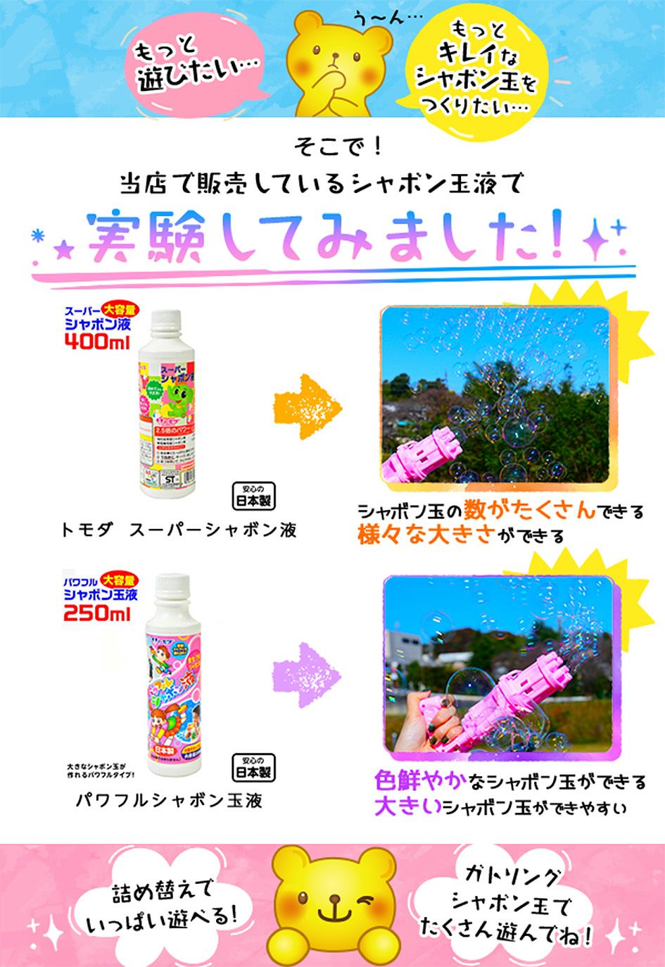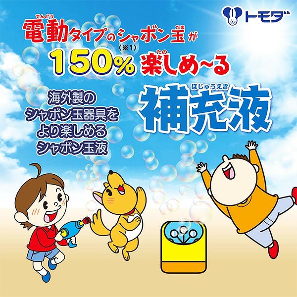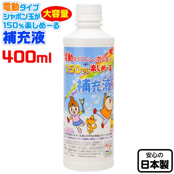他の画像を見る 30%OFF!!電動タイプに適したシャボン玉補充液! トモダ 電動タイプシャボン玉が150%楽しめーる 補充液 400ml { 景品玩具 しゃぼん玉 しゃぼん シャボン 日本製 国産 補充液 シャボン液 電動 }275[22K22] メーカー希望小売価格 ¥ 660 のところ 当店特別価格 ¥ 462 税込 カートに入れる お気に入りに登録する