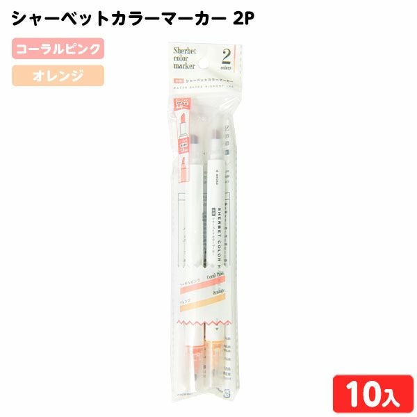 シャーベットカラー マーカー 2P (コーラルピンク・オレンジ) 10個装入