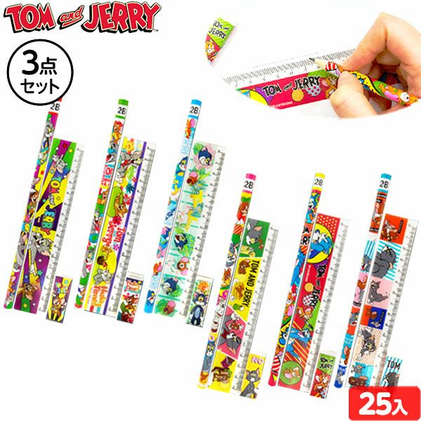 『トムとジェリー』の3点文具セット今、イチ押しの人気キャラクターデザインの鉛筆・消しゴム・15cm定規のセットです。