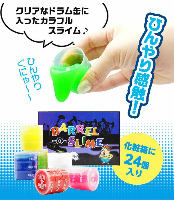 他の画像を見る 単価34円(約37.4円税込)x24個入=816円(898円税込)『トロ~ン』とした感触がたまらない! ドラム缶 カラフルスライム 3 ( 24個入 ) { 景品玩具 スライム ねんど 粘土 ひんやり }{ 景品 おもちゃ 詰め合わせ お祭り 縁日 問屋 子供 子供会 自治会 祭 お子様ランチ 大量 まとめ買い 保育園 幼稚園 パーティー イベント 配布 }217[24F22] メーカー希望小売価格 オープン価格 のところ 当店特別価格 ¥ 898 税込 カートに入れる お気に入りに登録する
