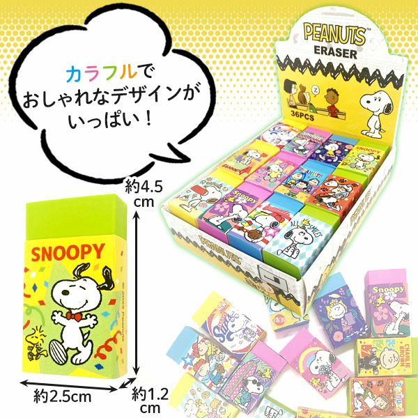 他の画像を見る 単価32円(約35.2円税込)x36個入=1152円(1267円税込)デザインいろいろ☆ スヌーピーのかわいい消しゴム スヌーピー 消しゴム 36個入 { 景品玩具 ケシゴム snoopy peanuts かわいい キャラクター }{ 景品 おもちゃ 詰め合わせ お祭り 縁日 問屋 子供 子供会 自治会 祭 お子様ランチ 大量 まとめ買い 保育園 幼稚園 パーティー イベント 配布 }258[24E29] メーカー希望小売価格 オープン価格 のところ 当店特別価格 ¥ 1,267 税込 カートに入れる お気に入りに登録する