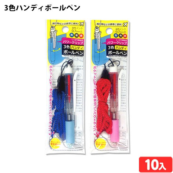 ポケットにすっきり収まるコンパクトサイズ&脱着が可能な紐付き3色ボールペンしっかり挟めるパワークリップを採用し、旅行時などの携帯にも便利です。