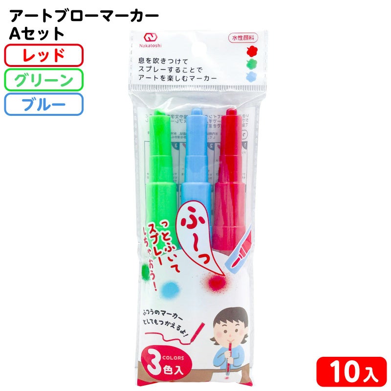 「ふ―っ!!」と拭いてスプレー画を楽しめる♪息を吹き付けてインクを出し、絵や文字を描くことができるマーカー3本セットです。