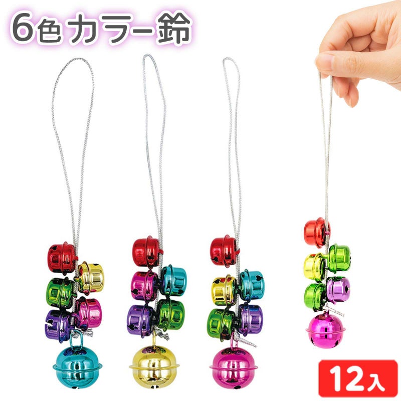 ひも付き6色カラー鈴大きな音が鳴る6連の鈴です。