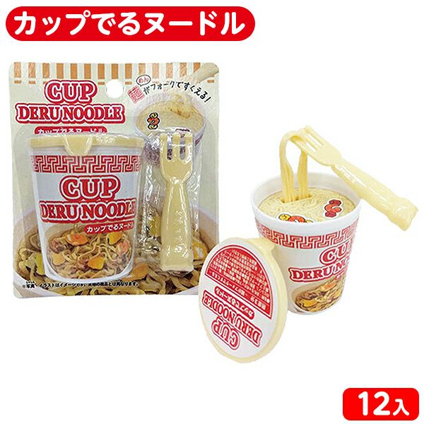 3分で完成!食べたような気分になれる「カップ でる ヌードル」!麺がフォークですくえるおままごと玩具。子どもたちの料理ごっこ遊びにぴったり。幼稚園や保育園でも人気のカップラーメンおもちゃ。お祭りやくじ引きの景品にも最適な夏祭り用品です。